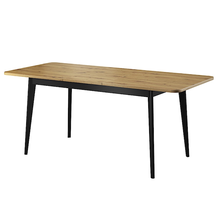 Blat wykonany z wysokogatunkowej płyty laminowanej 22 mm doskonale poradzi sobie w każdym domu. Cechuje się bowiem wysoką wytrzymałością oraz niepodatnością na uszkodzenia, dzięki czemu niestraszne mu będą wyzwania związane z codziennym użytkowaniem. Rozlany przypadkowo sos czy kawa nie zniszczą jego powierzchni, a upuszczony widelec nie spowoduje nieestetycznego wgłębienia. Pod blatem znalazła się rama z równie trwałej płyty o grubości 18 mm, co dodatkowo zwiększa wytrzymałość konstrukcji. Krawędzie naszego stołu wzmocniono specjalnym obrzeżem ABS w celu jeszcze lepszego zabezpieczeniu mebla przed wilgocią i wiążącym się z nią puchnięciem i wypaczaniem. Całości dopełniają eleganckie, skośne nogi z drewna dębowego.