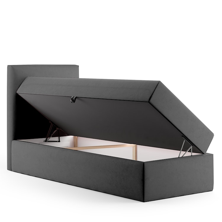 Posiadasz niewielką sypialnię, ale zależy Ci na pięknej i funkcjonalnej aranżacji? W Twoje gusta powinno trafić pojedyncze łóżko kontynentalne Fayence. Produkt wykorzystasz nie tylko w swojej sypialni, ale również w pokoju dziecięcym lub gościnnym. Łóżko posiada średnio twardy materac ze sprężynami bonellowymi. Całość pokrywa dołączony do zestawu topper z niezwykle miękkiej pianki T25. Wezgłowie mebla wzbogaca elegancka poduszka wypełniona śrutem. Jeżeli chodzi o obicie, wykonano je z pluszowej tkaniny niepodatnej na mechacenie, ścieranie, a także działanie światła. Dla zmaksymalizowania Twojego komfortu, poduszkę ozdobną możesz zdjąć, kiedy pójdziesz spać. Schowek pod materacem wykorzystasz jako pojemnik na tekstylia domowe, np. koce.