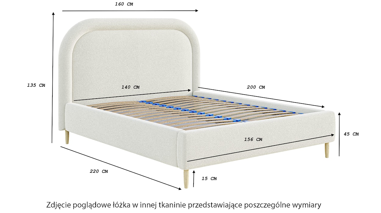 - wezgłowie ma zaokrąglony kształt i posiada ozdobną ramkę o grubości 10 cm,