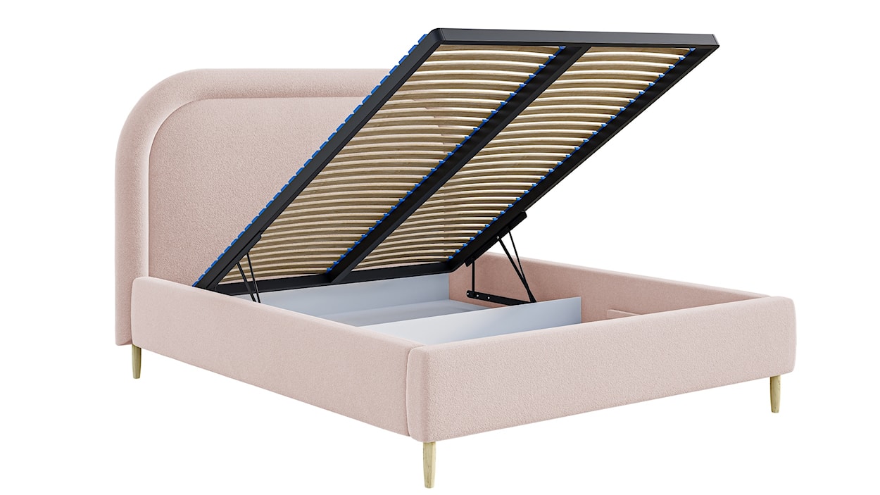 - pojemnik na pościel otwierany jest z przodu i posiada automaty wspomagające otwieranie,