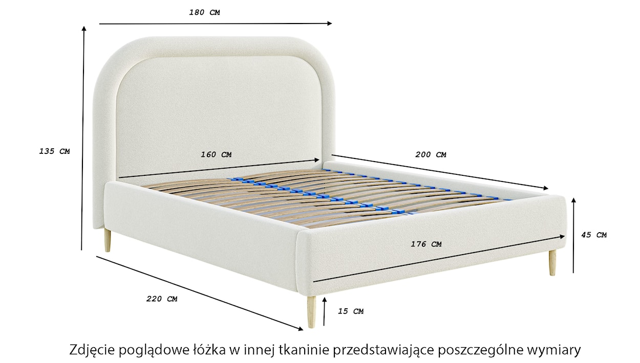 - wezgłowie ma zaokrąglony kształt i posiada ozdobną ramkę o grubości 10 cm, szerokość całkowita: 184 cm
