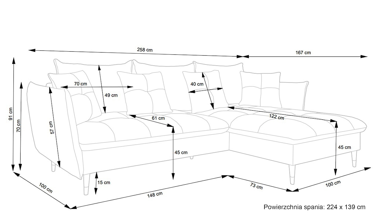 - narożnik wyposażono w pojemnik na dowolne tekstylia,