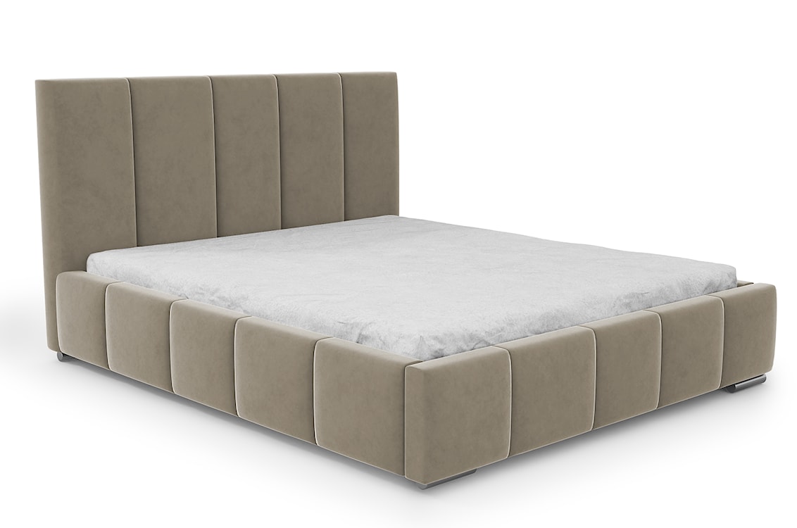 - łóżko obite tkaniną Velluto 03 w jasnobrązowym kolorze,
