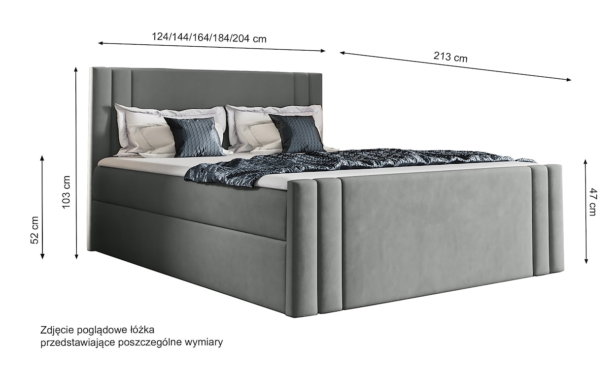 - model dostępny w następujących szerokościach: 120 cm, 140 cm, 160 cm, 180 cm i 200 cm.