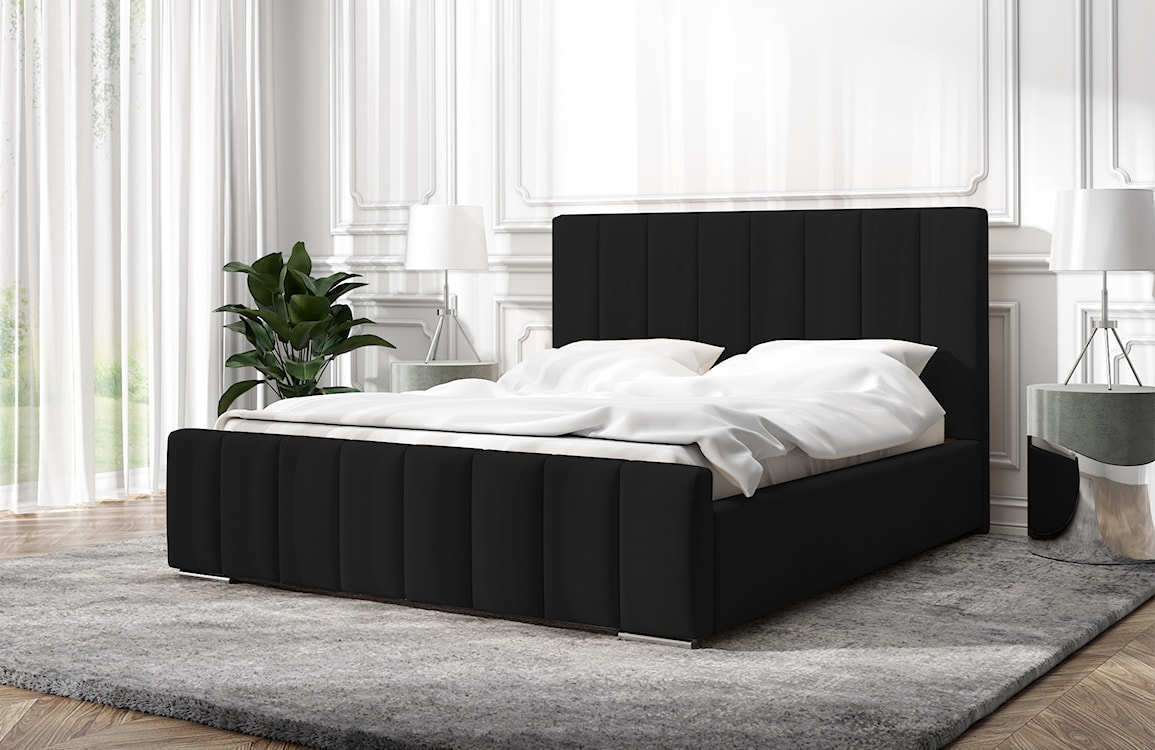 - łóżko obite tkaniną Velluto 20 w czarnym kolorze,