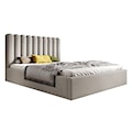 Motoba to nowoczesna konstrukcja w duchu glamour, która zauroczy każdego. Tapicerowany korpus prezentuje się szykownie i dodaje wnętrzu przytulności. Wysokie wezgłowie ozdobione jest pionowymi przeszyciami zaokrąglonymi na końcach, które urozmaicają bryłę.