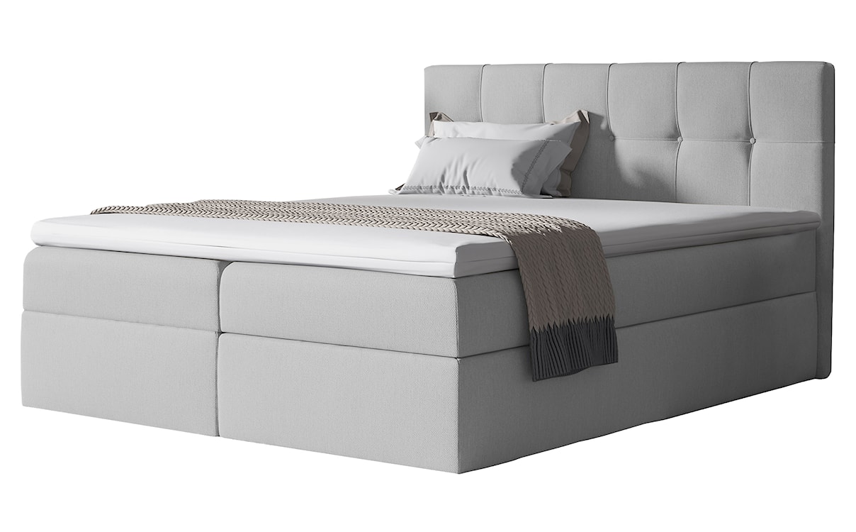 Verdeni to wykonane z wyjątkowym gustem łóżko kontynentalne o stylowych opakowaniach na wezgłowiu. Idealnie dopełni wszelkie sypialnie w stylu glamour, dodając im odpowiedniego charakteru. Łóżko skrywa dwuczęściową przestrzeń na przechowywanie pościeli, znajdującą się pod materacem, dzięki której pomieścisz wiele rzeczy, zyskując porządek w sypialni. Przestrzeń ta jest w formie pojemników łatwo otwieralnych, dzięki automatowi na sprężynach. W komplecie z łóżkiem Verdeni jest materac, w skład którego wchodzą sprężyny bonellowe oraz pianka wysoko elastyczna T30 sprawiając, że pokochasz to łóżko od pierwszego położenia się na nim. Miękkości dodaje również topper o wysokości 5 cm. Całości dopełnia miła w dotyku welurowa tkanina o szerokiej gamie kolorystycznej, dzięki której na pewno znajdziesz kolor dla siebie. Nie czekaj, zamów już dziś!
