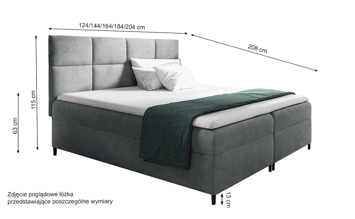 Łóżko kontynentalne Fremollo to mebel w którym prostota i funkcjonalność spotyka się z nowoczesnością. Solidna, prosta bryła, sprawia, że jest to łóżko idealnie wpasowujące się w większość aranżacji sypialni. Łóżko posiada gustowny zagłówek w kasetonowe wzory, który doda Twojemu wnętrzu charakteru, a jednocześnie doskonale podeprze Twoje plecy podczas wieczornej aktywności, np. czytania książki. Wnętrze Fremollo skrywa w sobie dwa spore pojemniki na pościel umiejscowione pod materacem, łatwo otwieralne, dzięki automatowi na sprężynach. W zestawie z łóżkiem znajduje się materac, który składa się ze sprężyn kieszeniowych bonellowych oraz pianki wysoko elastycznej T30. Efektem takiego połączenia jest ogromna wygoda spania na Fremollo. Miękkości dodaje również topper o wysokości 5 cm. Całości dopełnia miła w dotyku welurowa tkanina sprawiając, że nie będziesz chciał z niego wstać. Nie zwlekaj, zamów już dziś!