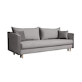 Kanapa Merauke to współczesny design połączony z funkcjonalnością. Prosta bryła ze smukłymi podłokietnikami została oparta na wysokich, bukowych nóżkach. Mimo minimalistycznego wyglądu, dołączone do kanapy poduszki sprawiają, że zyskuje ona przytulności, zachęcając do odpoczynku. Mebel posiada funkcję spania i wyposażony jest w mechanizm DL, który pozwala na szybką przemianę kanapy w wygodne łóżko o obszernej powierzchni. Praktyczny pojemnik umożliwi Ci schowanie zapasowej pościel dla gości.