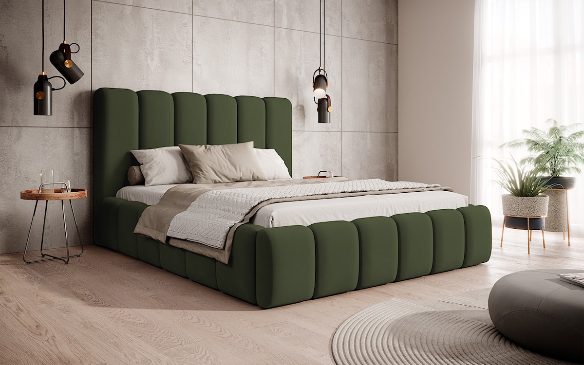 Biscottino to piękne łóżko tapicerowane posiadające ozdobne, pionowe przeszycia zarówno na wezgłowiu jaki na samej ramie. Zaokrąglone kształty łóżka dodają mu przytulności, od progu zachęcając do relaksu po dniu pełnym wyzwań. Wygodne zagłowie pozwala komfortowo oprzeć plecy w czasie czytania ciekawej książki czy filmowego seansu przed snem. Biscottino posiada przestronny pojemnik na pościel, do którego dostaniesz się z łatwością za sprawą solidnego metalowego stelaża wyposażonego w podnośniki gazowe wspomagające jego otwieranie.