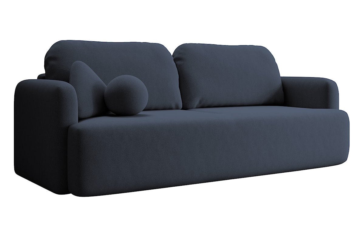 Kanapa Lambina to designerski mebel obity tkaniną o wyjątkowej strukturze typu boucle. Będzie stanowiła doskonałe uzupełnienie jasnych, nowoczesnych wnętrz, nawiązujących do natury. Zaoblone kształty kanapy idealnie wpasowują się w obecne trendy wnętrzarskie, a poduszki w formie trójkąta i kuli nadają jej charakteru. Prosta bryła o kompaktowych wymiarach Lambina wykonana została ze sprężyny falistej typu B, dzięki czemu siedzisko mebla jest bardziej elastyczne, a co za tym idzie bardzo wygodne. Uczucie to potęguje wypełnienie z pianki wysokoelastycznej PU, która dzięki swojej odpowiedniej gęstości nadaje jej odpowiedniej miękkości i komfortu. dodatkowo pianka ta posiada atest higieniczny wydany przez Narodowy Instytut Zdrowia Publicznego – Państwowy Zakład Higieny oraz Certyfikat wg STANDARD 100 by OEKO-TEX ® wydany przez Instytut Włókiennictwa w Łodzi. Lambina posiada duży pojemnik na pościel lub inne rzeczy, stanowiąc niewątpliwie dodatkowe udogodnienie. Mebel ten możesz z łatwością zamienić w funkcję spania o powierzchni 152/200 cm, na którym wyśpią się członkowie Twojej rodziny czy odwiedzający Cię goście.