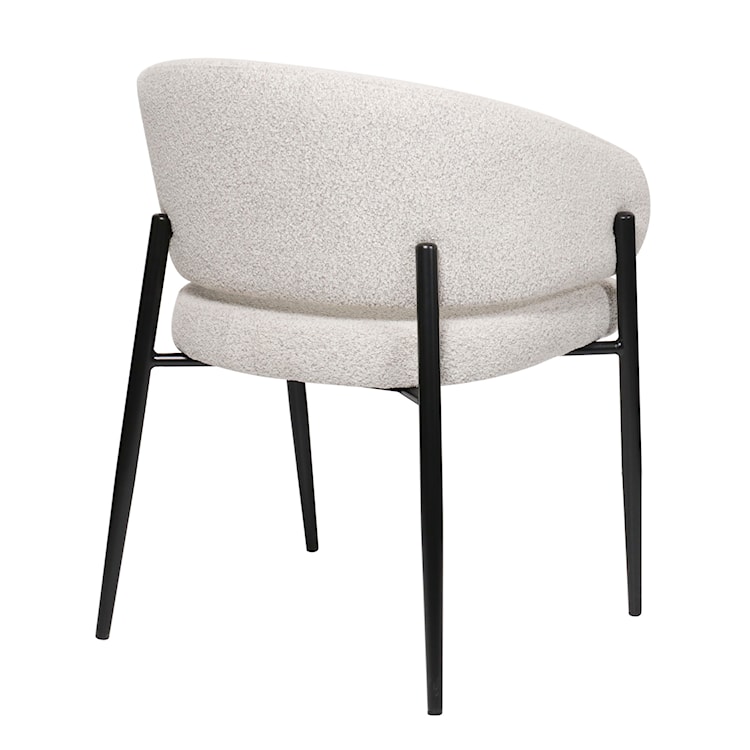 Wykonane z miękkiej tkaniny boucle o delikatnym odcieniu szarobeżowym, siedzisko i oparcie tego krzesła zachwycają nie tylko swoim wyglądem, ale także przyjemnym dotykiem. Nasze krzesło wyróżnia się nie tylko swoim wyglądem, ale także solidnością wykonania. Czarna podstawa dodaje mu szczyptę minimalizmu i klasy, jednocześnie doskonale komponując się z delikatną tonacją tapicerki. Smukła forma krzesła nadaje mu lekkości, co sprawia, że idealnie pasuje do różnych aranżacji wnętrz, zarówno tradycyjnych, jak i nowoczesnych.