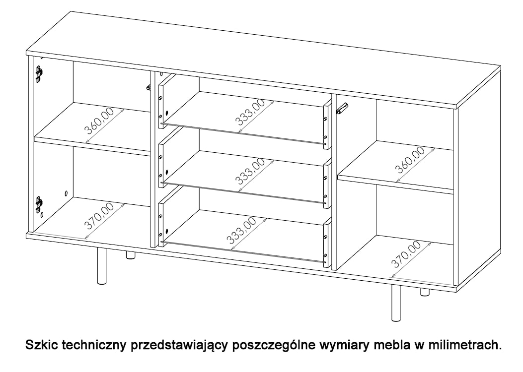 - wykonanie: płyta wiórowa 16 mm oraz MDF frezowany oklejony folią (front),