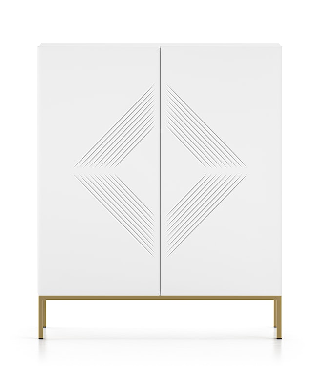 Wysoka komoda Nebbato o wyjątkowym designie będzie świetnie komponowała się z nowoczesnymi wnętrzami. Została wykonana z wysokiej jakości płyty MDF, która zapewni długotrwałe i bezproblemowe użytkowanie. Jej charakter wzbogaca solidny stelaż wykonany z metalu, który nie tylko nadaje meblowi wytrzymałość, ale również dodaje mu industrialnego uroku. Z kolei wyrafinowany detal w postaci frezowanego wzoru na froncie dodaje wyjątkowego wyglądu całej szafce. Komoda została zaprojektowana z myślą o funkcjonalności, więc posiada trzy szerokie półki, na których umieścisz różnego rodzaju przedmioty, zależnie od Twoich potrzeb. Biały mat, zestawiony ze złotym stelażem nadaje wnętrzu subtelnego, lecz wytwornego charakteru. Ten mebel to nie tylko praktyczne rozwiązanie do przechowywania, ale także designerski element, który podkreśli indywidualny styl każdego pomieszczenia. Kolekcja Nebbato - wprowadź elegancję dla swojego wnętrza już dziś!