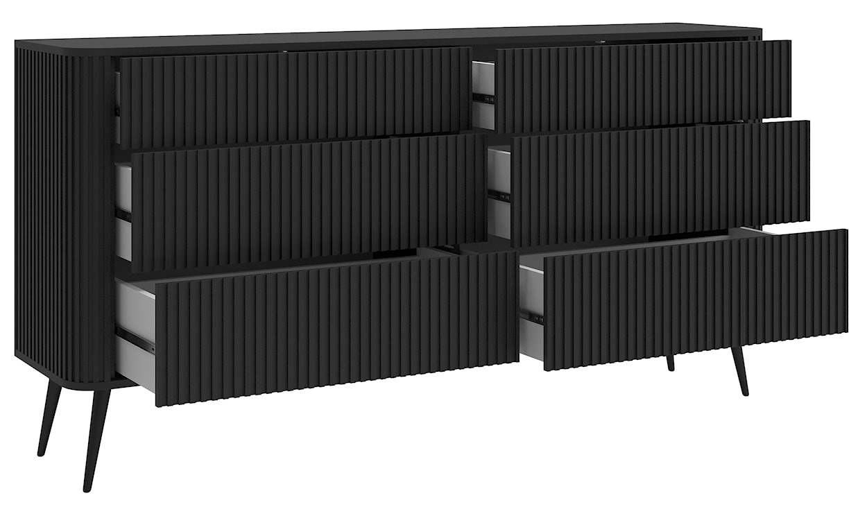 Wykonana z trwałej płyty wiórowej laminowanej oraz folii MDF laminowanej, oferuje solidność i styl, który przetrwa lata. Obrzeża PCV dodają odporności na codzienne zużycie, zapewniając długotrwałe użytkowanie. Różnorodność brył w kolekcji Ovarlo pozwala na kreatywne i dowolne aranżacje przestrzeni, idealnie dopasowane do Twoich potrzeb. Dzięki systemowi otwierania push to open, korzystanie z mebli staje się proste i komfortowe, eliminując konieczność używania tradycyjnych uchwytów. Metalowe, wysokie nogi nadają meblom lekkości i nowoczesnego charakteru, a ryflowane fronty dodają unikalnego wyglądu. Kolekcja oferuje różne warianty kolorystyczne, co umożliwia idealne dopasowanie do Twojego wnętrza. Przemyślane rozwiązania do przechowywania, takie jak szuflady i szafki, oferują mnóstwo miejsca na Twoje rzeczy, pomagając utrzymać porządek w domu. Wybierając meble Ovarlo, inwestujesz w styl, wygodę i praktyczność, które codziennie będą cieszyć Twoje oko.