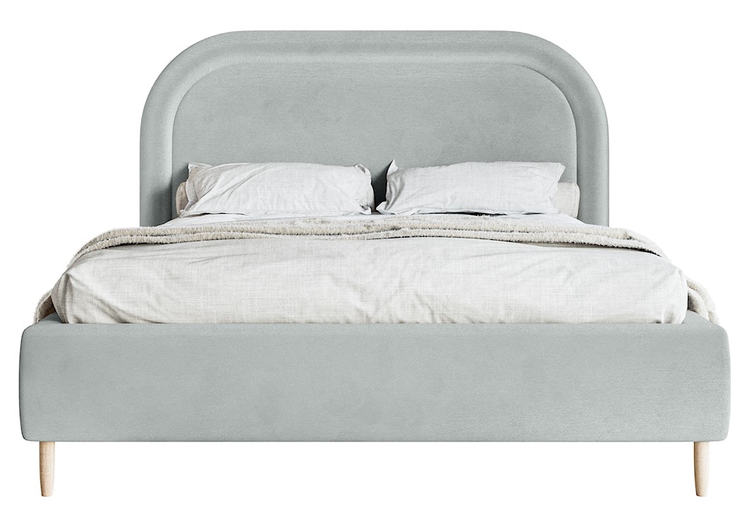 Loreo przykuwa uwagę niebanalnym, zaokrąglonym kształtem wezgłowia. Zagłówek, jak i całe łóżko, obity jest miękką tkaniną, dzięki czemu, poza świetną prezencją, doskonale sprawdzi się podczas wieczornej lektury czy niedzielnego śniadania w łóżku, dając wygodne oparcie Twoim plecom. Korpus łóżka wykonano z drewna i umieszczono na nim metalowy stelaż, który po podniesieniu ku górze, tworzy obszerny pojemnik na pościel. Całość oparta jest na wysokich, drewnianych nóżkach, zapewniających konstrukcji stabilne podparcie.