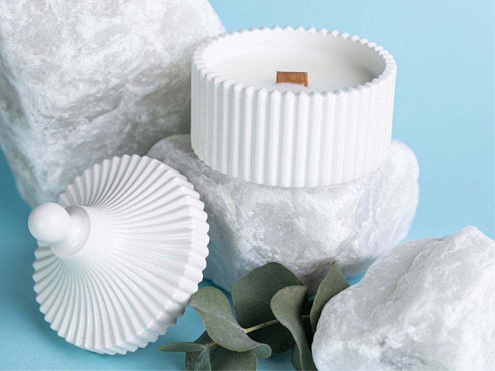 - elegancki design w białym gipsie sprawia, że świeca doskonale wpasowuje się w różne aranżacje wnętrz,
