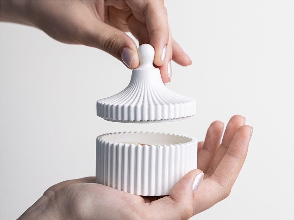 - elegancki design w białym gipsie sprawia, że świeca doskonale wpasowuje się w różne aranżacje wnętrz,