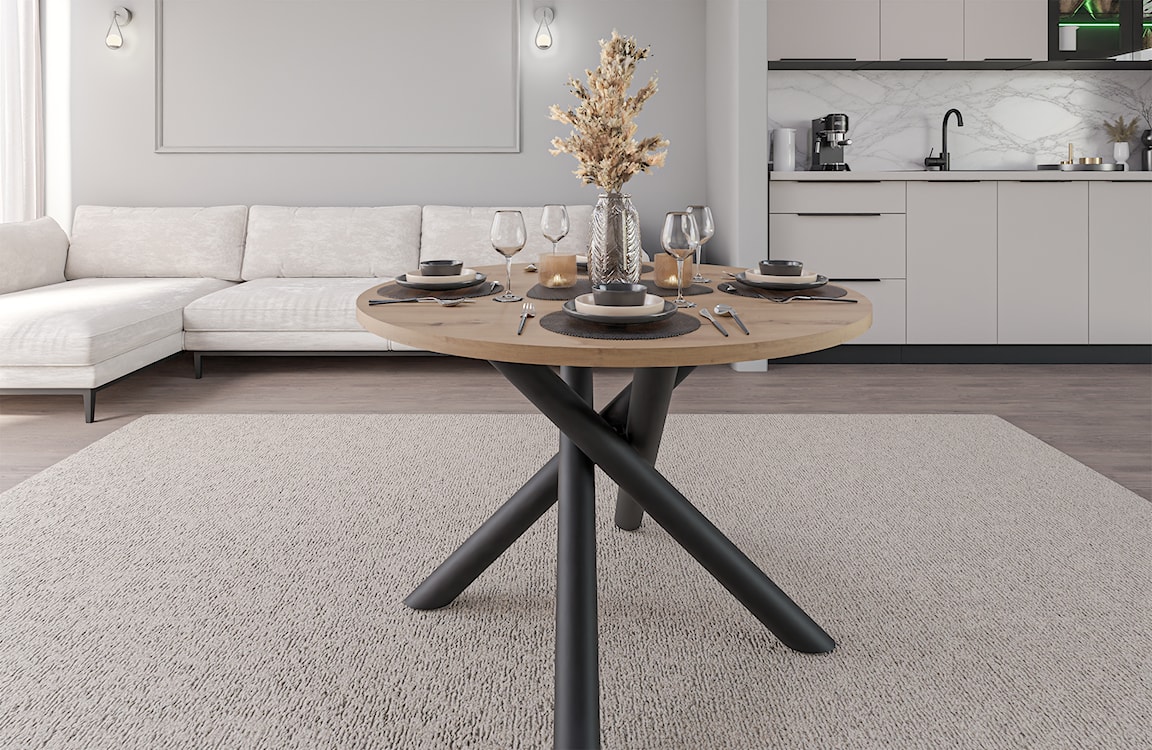 Stół Fjorn charakteryzuje się solidną konstrukcją, a unikalne, krzyżujące się nogi nadają mu nowoczesnego, dynamicznego wyglądu. Dąb Artisan czyli naturalny, wyrazisty blat z widocznym usłojeniem to kwintesencja stylu rustykalnego i skandynawskiego. Wnosi do wnętrz ciepło i autentyczność, podkreślając bliskość natury. Świetnie sprawdzi się w przestrzeniach o jasnej kolorystyce, gdzie stanie się centralnym punktem aranżacji. Stwórz wnętrze swoich marzeń – wybierz stół, który podkreśli Twój styl i ciesz się wspólnymi chwilami z bliskimi!