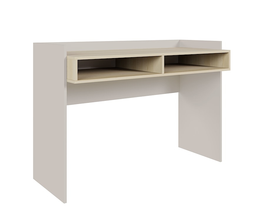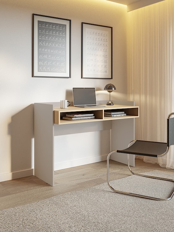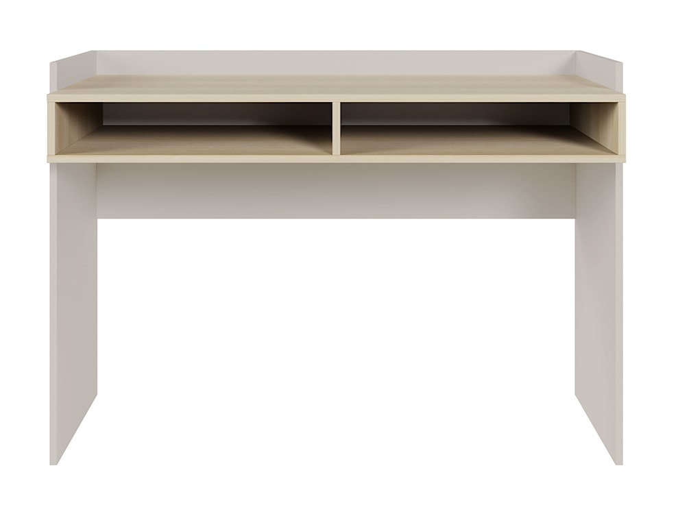 Dzięki dwóm praktycznym wnękom pod blatem zyskujesz idealne miejsce na przechowywanie akcesoriów biurowych, książek czy dokumentów – wszystko, czego potrzebujesz, masz zawsze pod ręką, a powierzchnia użytkowa pozostaje przestronna i uporządkowana. Prostokątny blat z podniesionym rantem to nie tylko detal wizualny – to także praktyczne rozwiązanie chroniące drobiazgi przed zsuwaniem się podczas pracy. Kolorystyka łącząca kaszmir i dąb lindberg wprowadza do pomieszczenia modną, stonowaną harmonię, która doskonale współgra zarówno z nowoczesnymi, jak i bardziej klasycznymi aranżacjami. To mebel, który nie dominuje przestrzeni, a subtelnie ją dopełnia, tworząc sprzyjające warunki do pracy i nauki. Solidne wykonanie z płyty laminowanej oraz dodatkowe zabezpieczenie obrzeżem PCV to gwarancja wytrzymałości i odporności na codzienne użytkowanie. Biurko Tabise zachwyca modernistycznym designem, który łączy prostotę formy z nowoczesnym stylem, czyniąc je idealnym wyborem do domowego biura, pokoju młodzieżowego czy nowoczesnej przestrzeni pracy.