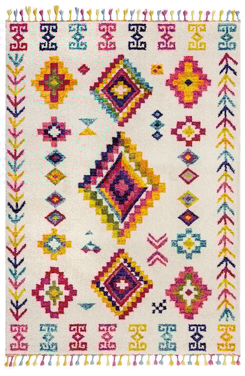U góry i na dole dywanu umieszczono też fantazyjne chwosty. W takim razie na pewno zwrócisz uwagę na gustowny dywan z kolekcji Catarez. Jeśli jesteś fanem geometrycznych wzorów, na pewno spodoba Ci się dywan z kolekcji Catarez! Dzięki powierzchni z wzorem rombów dywan doskonale uzupełni aranżację inspirowaną stylem vintage pełnym ma prostokątny kształt, powierzchnię dywanu pokrywa geometryczny wzór w formie różnokolorowych rombów